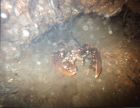 Visibility was very good. Many animals were seen, like crabs, eels, lobsters, many fish. Fighting crabs, a bigger fish (donderpad) with a smaller one in his mouth, crabs eating clamps. Big donderpad-like fish, also some orange-purpleish fish, which do not seem to be scared at all. Also quite a few small jellyfish (zeedruif) were seen. These look very nice, since the refraction of the light of the divelight inside some parts of the body of the fish looks really cool. A little bit like landing lights.